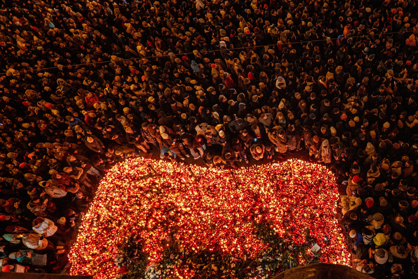 Люди зажигают свечи у мемориала в ознаменование 35-й годовщины Бархатной революции 1989 года в Праге, Чешская Республика. (Фото Lukas Kabon):
