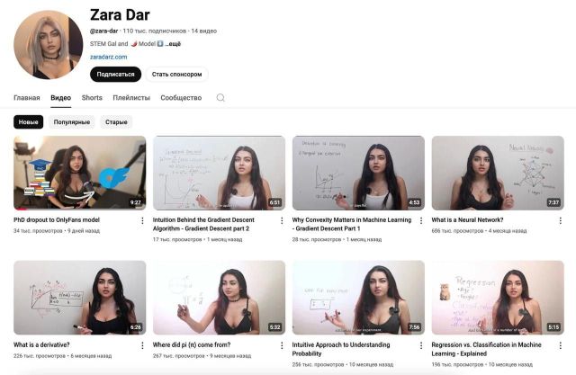 Зара Наим Дар из Пакистана произвела настоящий фурор, когда начала делиться образовательным контентом о математике и машинном обучении на YouTube. Ее подход к сложным темам был необычайно доступным, и она быстро завоевала популярность. Однако неожиданно для всех, Зара решила отказаться от карьеры в науке, поскольку подписчики больше интересовались ее внешностью, чем ее знаниями. В результате она приостановила работу над докторской степенью и сменила направление своей деятельности.