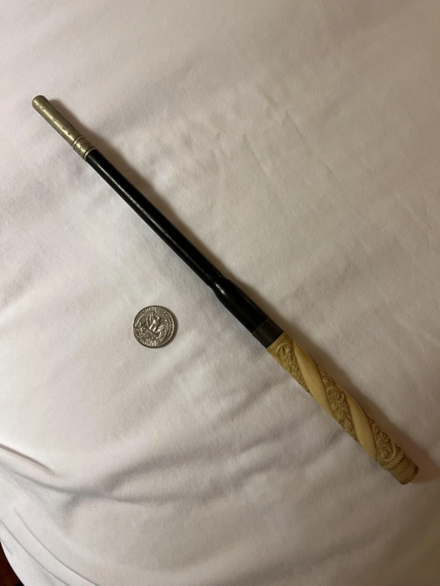 «Палка длиной около 30 сантиметров из черного дерева с гравированным наконечником и рукоятью из слоновой кости»