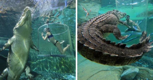 Бассейн предназначен для любителей экстрима. Человек, находясь в специальном защитном контейнере, помещается в бассейн с огромными крокодилами. Продолжительность наблюдения за рептилиями составляет 20 минут.