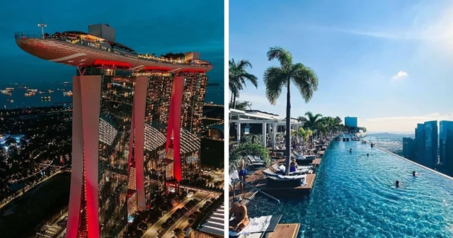 Удивительный бассейн находится на крыше гигантского развлекательного комплекса. Всего в нём 57 этажей.