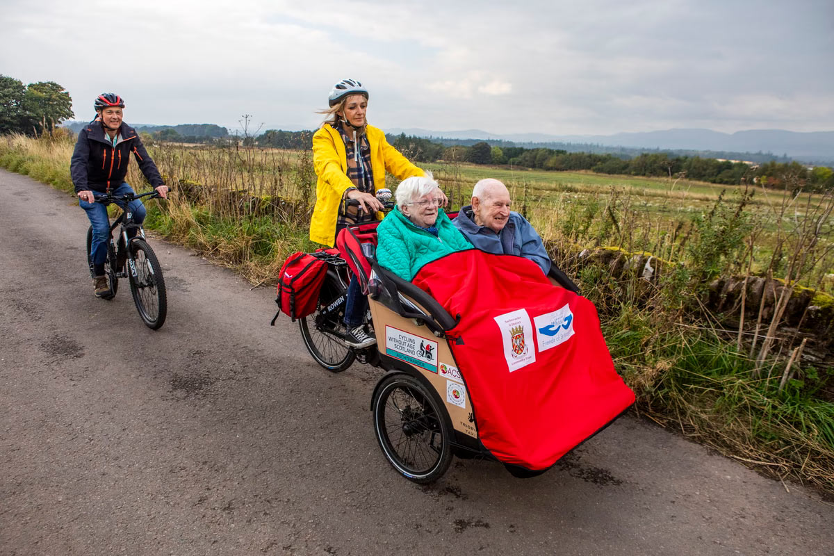 Волонтеры бесплатно катают пассажиров на велорикшах в город Auchterarder, Шотландия. (Фото Katielee Arrowsmith):