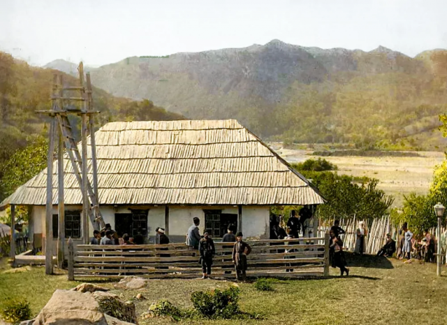 Дома в то время строили из местных строительных материалов: глина, камыш, солома, хворост. В предгорных районах использовался деревянный брус. Хата на фотографии была построена в 1841 году.
