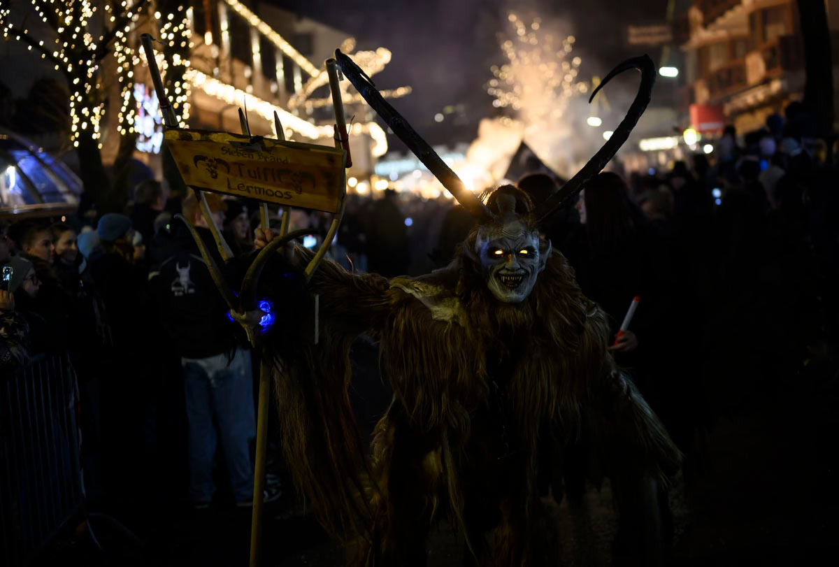 Артисты в костюмах Крампуса бродят по центру деревни во время ежегодного парада Крампуса в Зеефельде, Австрия. (Фото Philipp Guelland):