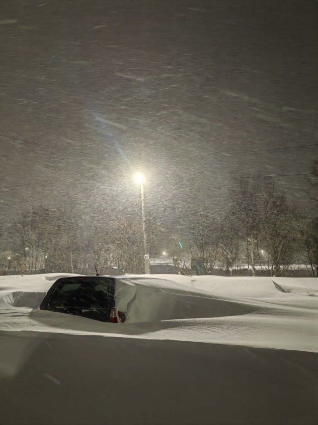 Согласно последним данным, сильный снегопад затопил частные дома до самой крыши, а в многоквартирных зданиях не удается попасть внутрь из-за заносов на первом этаже. Даже железнодорожные составы застряли в снегу, а автомобильное движение фактически парализовано. Метель бушует на острове уже сутки, и синоптики обещают, что она стихнет лишь после 30 января.
