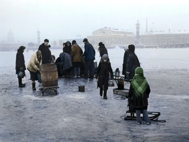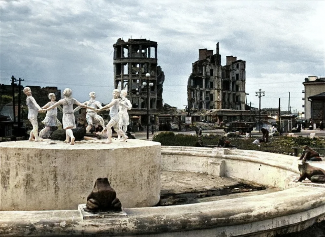 Воронка от авиабомбы на набережной Фонтанки. Ленинград, сентябрь 1941 года.