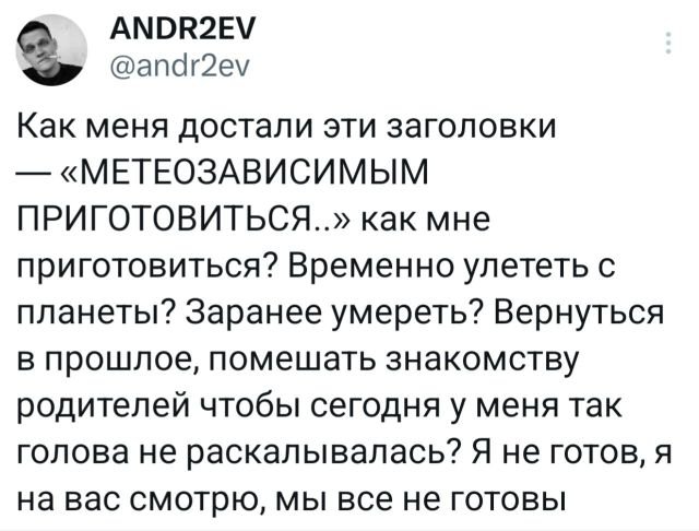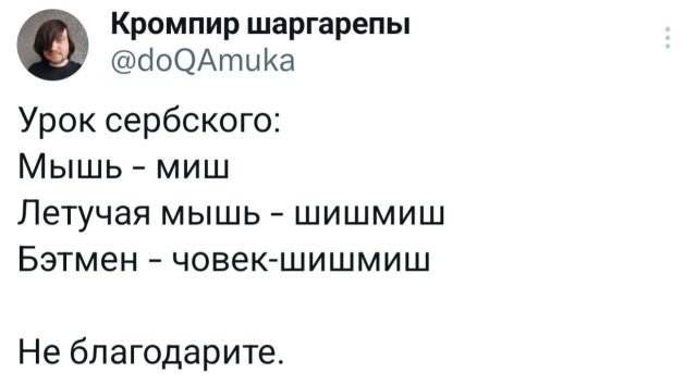Твиты, от которых невозможно оторваться 31/01/2025 16:00 Свежая коллекция остросоциальных шуток и абсурдного юмора — ваш билет в мир цифрового смеха. Заходите, листайте и заряжайтесь позитивом от мастеров твиттер-троллинга. Гарантируем: скучно не будет! Главная / Картинки +2 Admin 0 256