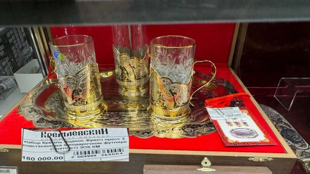В продаже появился чайный набор «а-ля РЖД» за 180 тысяч рублей. Также на аукционе представлены другие эксклюзивные предметы: нарды за 59 тысяч рублей, толстовка с гербом СССР за 16 тысяч, и золотой значок с двуглавым орлом за 3 тысячи.