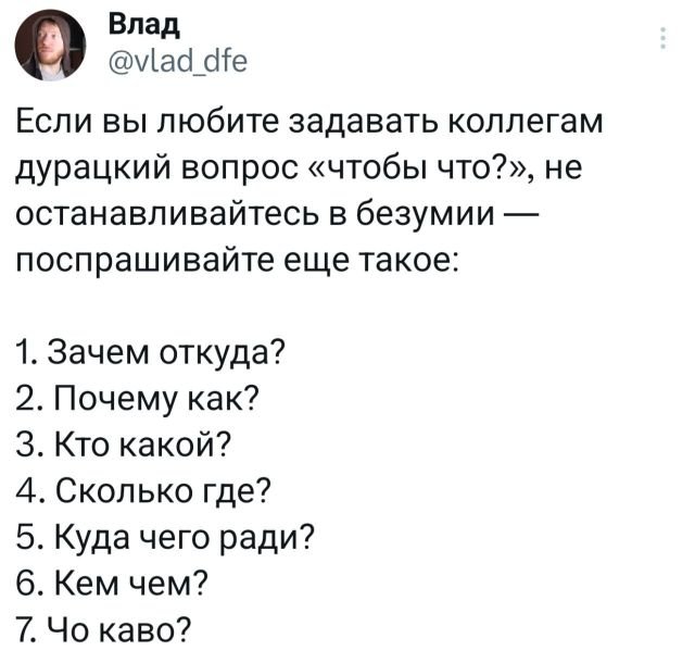 Свежая подборка забавных твитов 13/02/2025 19:00 Новая порция смешных твитов уже здесь! Этот формат давно полюбился пользователям – не требует долгих пояснений, но гарантированно поднимает настроение. Так что устраивайтесь поудобнее и наслаждайтесь! Главная / Картинки +3 Admin 0 152