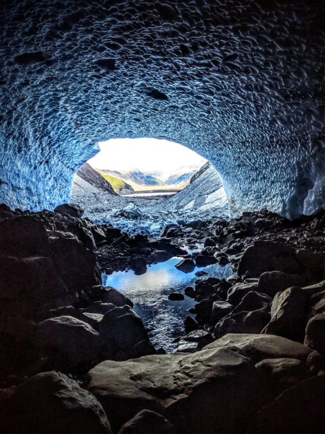 "Ледник Байрона на Аляске. Стены и свод туннеля полностью ледяные"