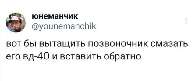 Забавные твиты обо всём на свете 18/02/2025 17:00 Твиттер снова радует! Самое время сделать паузу, налить себе чашечку чая или кофе, взять что-нибудь вкусненькое и насладиться новыми забавными твитами от пользователей со всего интернета. Приятного просмотра! Главная / Картинки +3 Admin 0 171