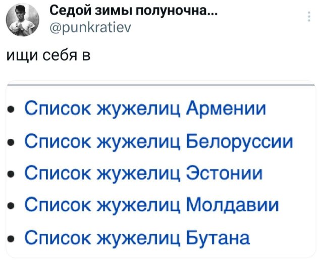 Веселые твиты о жизни 19/02/2025 22:40 Вот новая подборка смешных твитов, которые дарят нам улыбку! Похоже, пользователи Интернета не устаревают и продолжают радовать нас своими остроумными мыслями и юмором. Присоединяйтесь, читайте и наслаждайтесь! Главная / Картинки 0 Admin 0 151