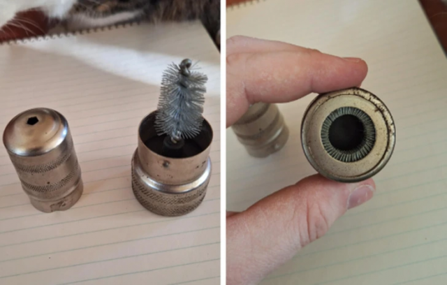 «Металлический цилиндр c проволочной щеткой внутри и ершиком. Понятия не имею, откуда он вообще взялся»