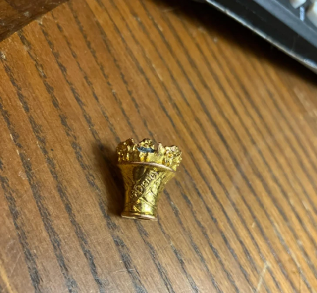 "Ходил с металлоискателем вдоль реки нашел это. Он тяжелый для своего размера, золотистого цвета и на нем есть гравировка «@ Disney»."