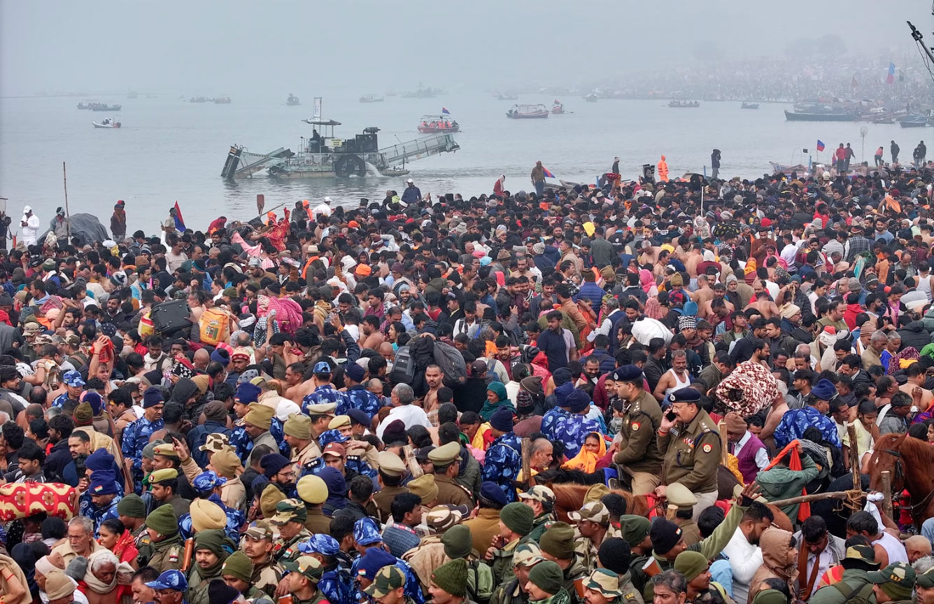 Паломники-индуисты принимают участие в массовом ритуале омовения в Сангаме во время Шахи Снан («королевского омовения») в Праяградже. (Фото Idrees Mohammed):