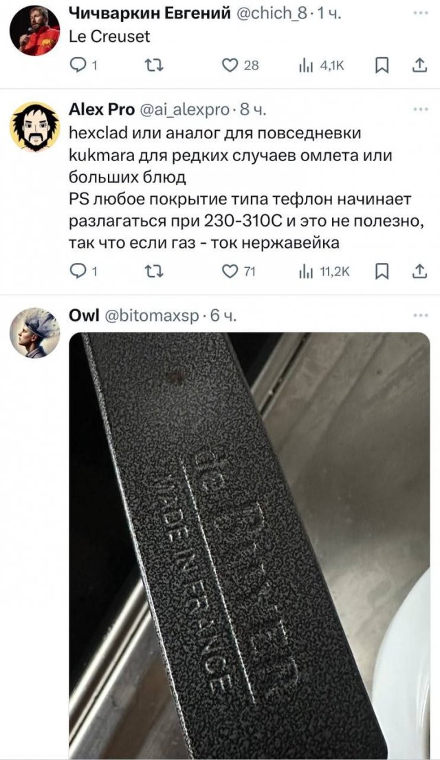 Не все обсуждения в соцсетях сводятся к шуткам – иногда поднимаются действительно важные вопросы. Например, какая сковорода самая лучшая? Пользователи поделились своими рекомендациями, а какой вариант выбираете вы?