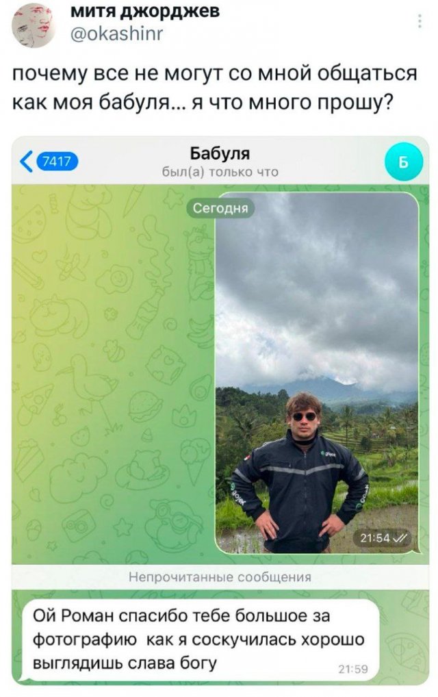 Подборка веселых твитов на все случаи жизни 27/02/2025 15:00 Перед вами свежая порция забавных твитов от остроумных пользователей интернета. Отличный повод сделать небольшой перерыв и поднять себе настроение. Давайте посмотрим, чем они нас сегодня порадуют! Главная / Картинки +3 Admin 0 165