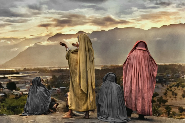 Мусульманские женщины молятся на восходе солнца над Гималаями в Сринагар, Кашмир, Индия, 1948 год.