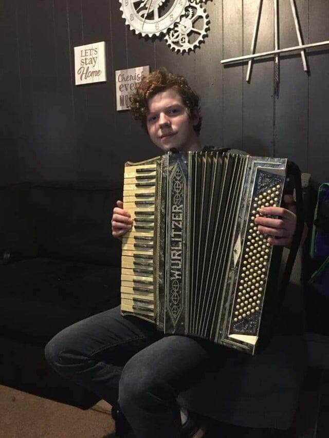 Аккордеон, доставшийся от дедушки. Этот аккордеон подарили дедушке его родители где-то в 1950-х, чтобы он учился играть. В итоге на аккордеоне играет уже третье поколение.