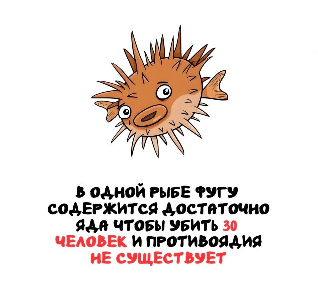Что опаснее: алкоголь или сладкая выпечка? Насколько ядовит рыбий яд фугу? Какой вкус у жареных червей? Сколько времени могут спать улитки? Ответы на эти и другие любопытные вопросы ждут вас в нашем новом сборнике удивительных фактов для каждого дня.