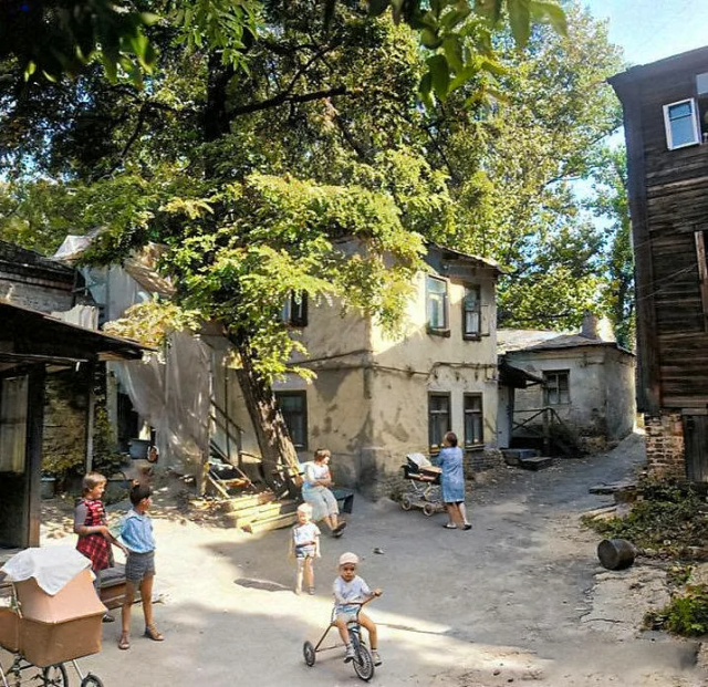 Один из дворов на улице Менжинского. Киев, 1970-е.