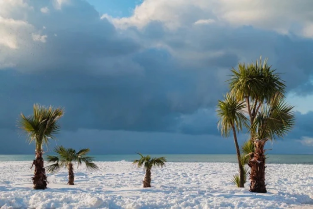 "Снимал пальмы, когда на побережье внезапно обрушилась снежная буря"