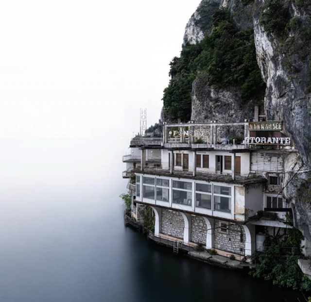 Итальянский отель в скалах, уже давно не работает из-за нерентабельности