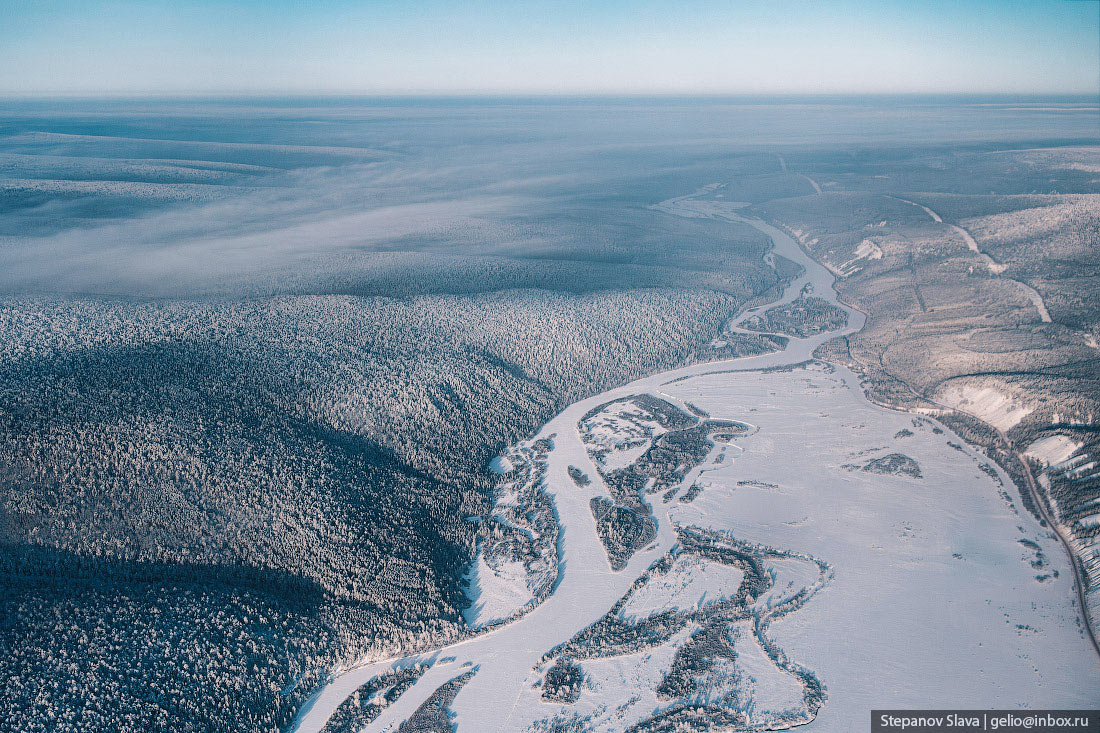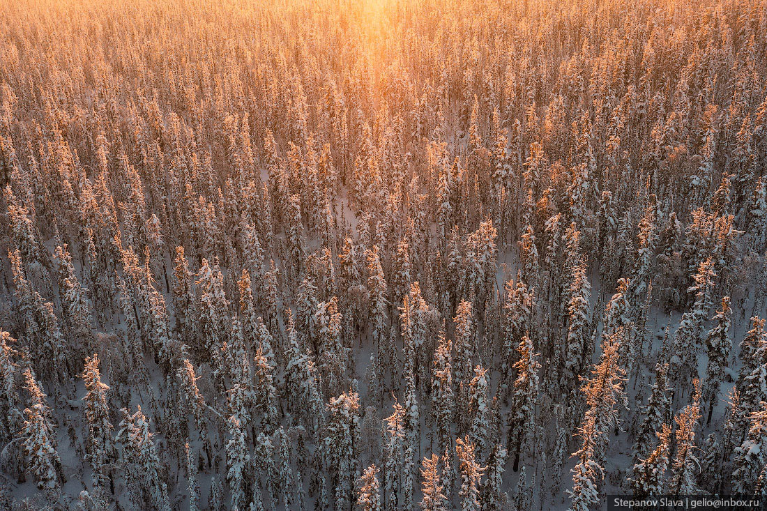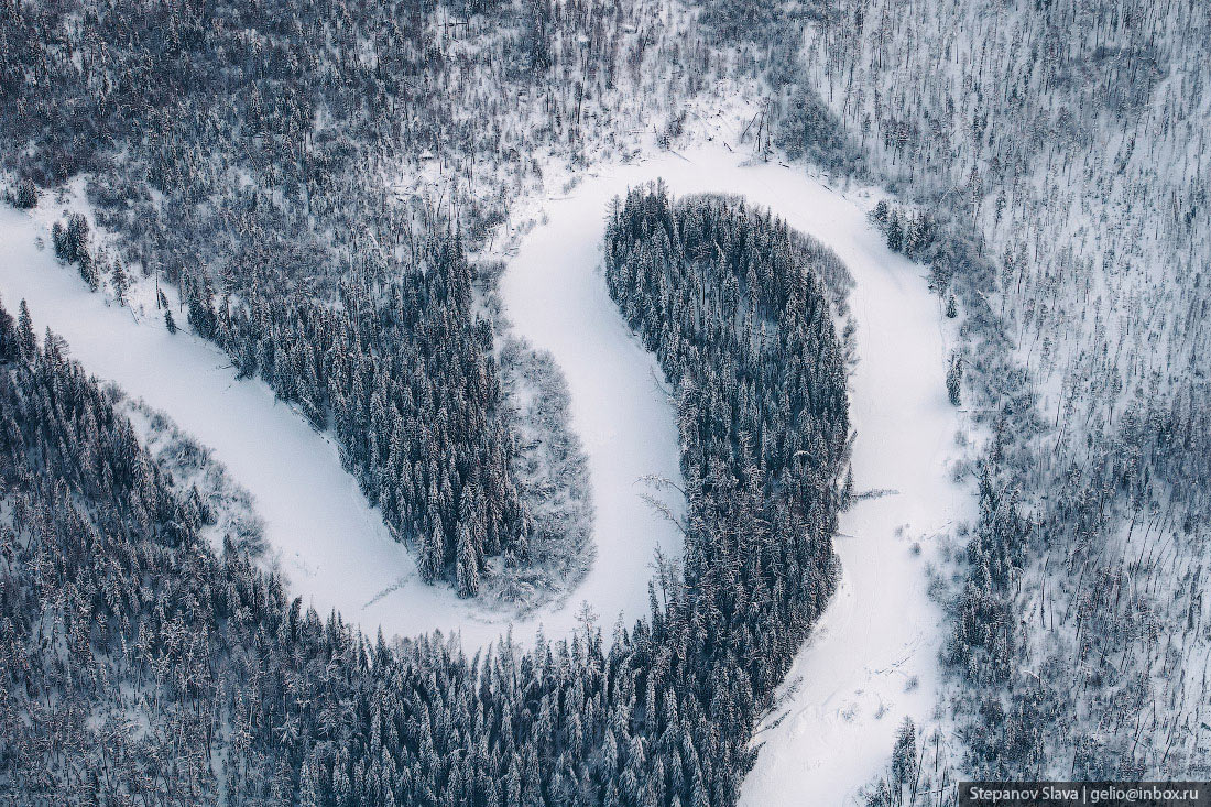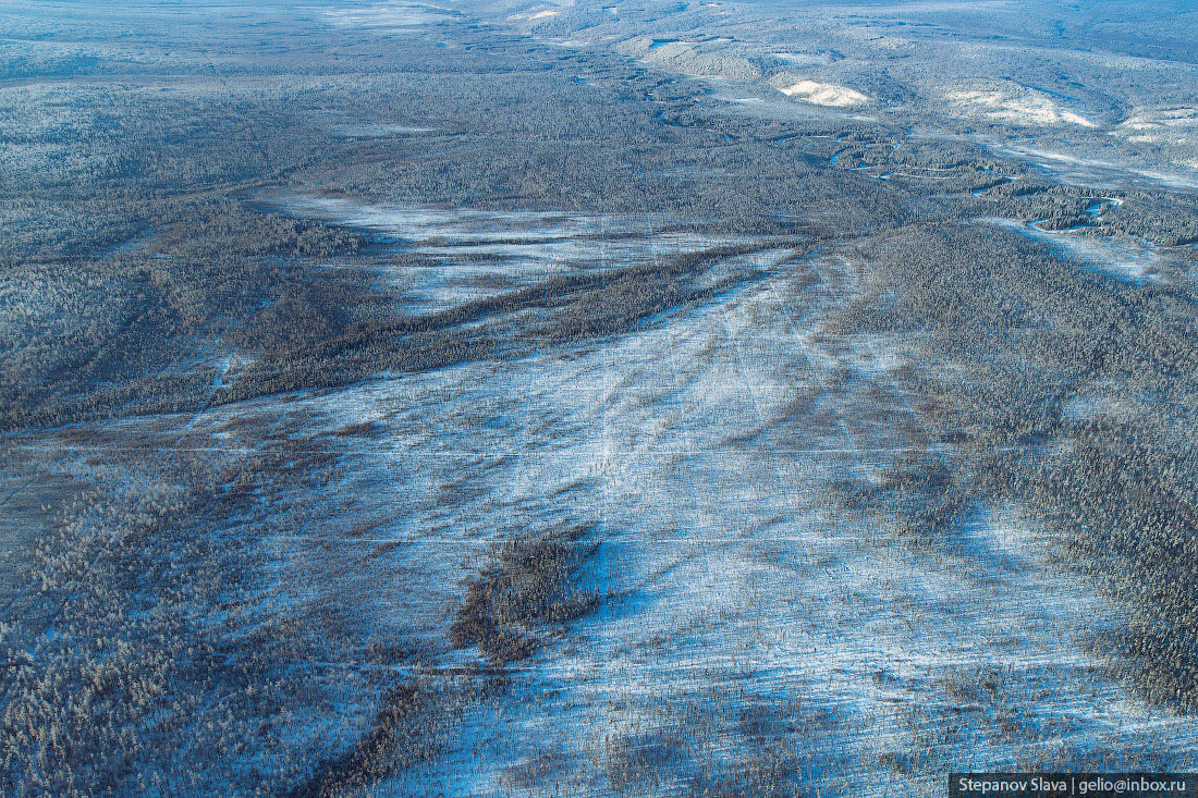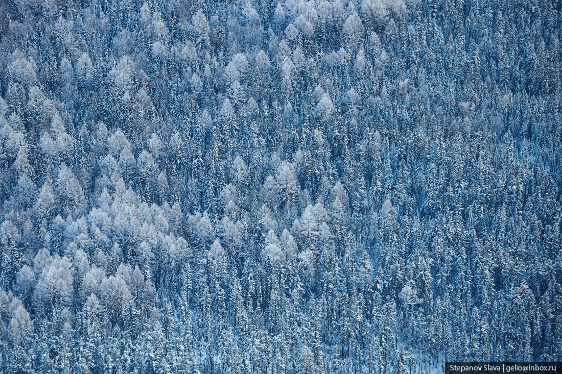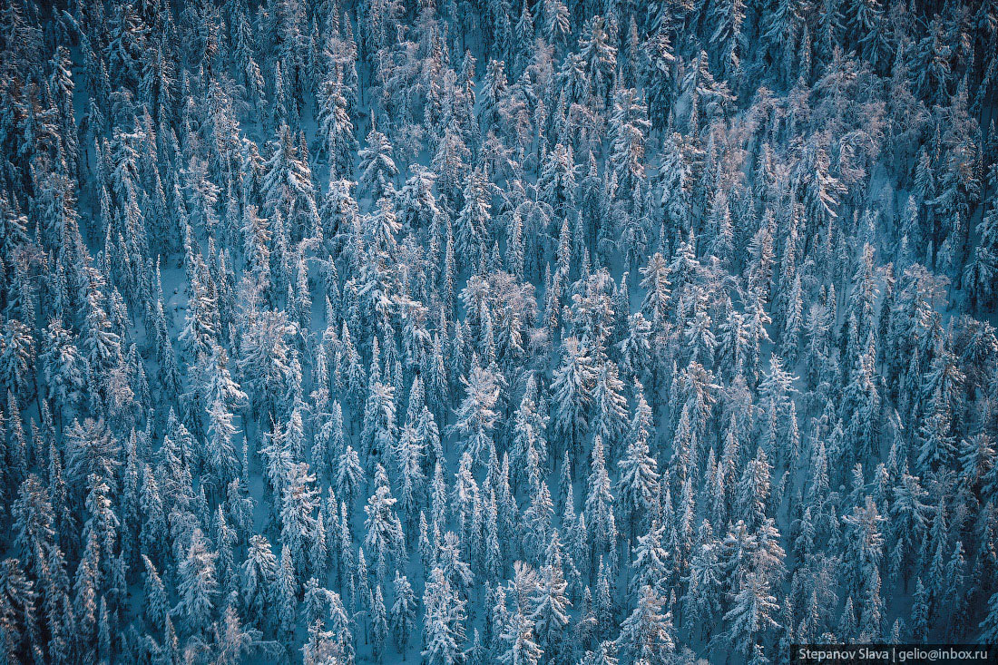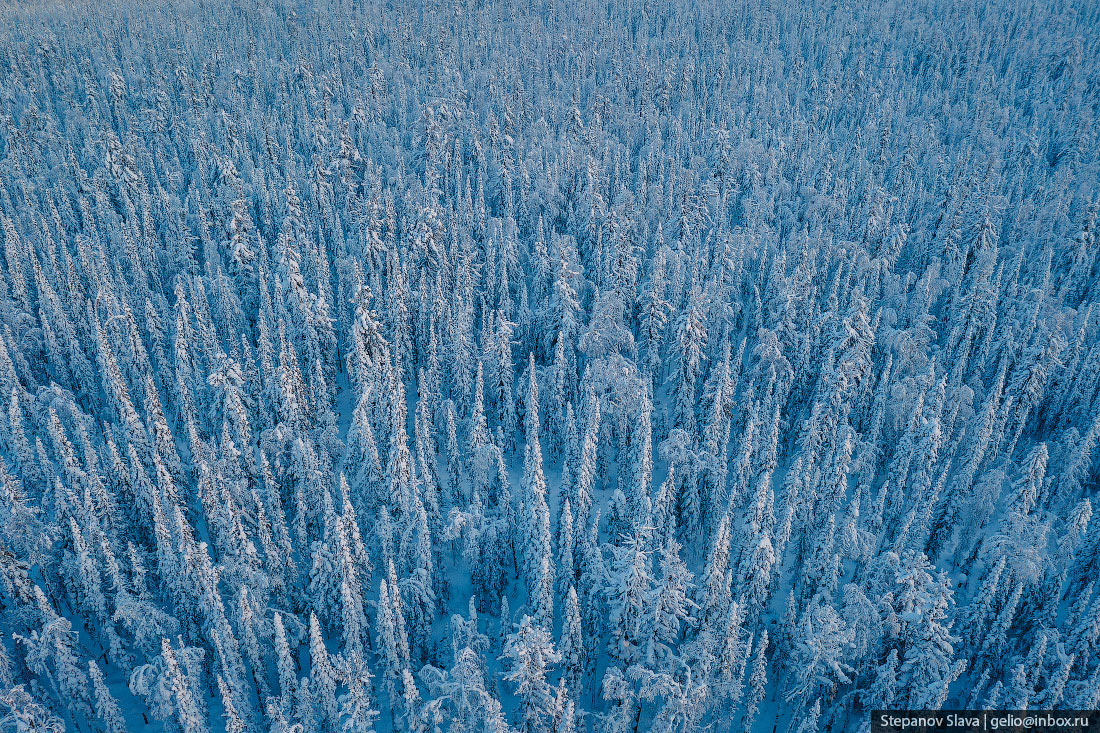 Тайга зимой с высоты