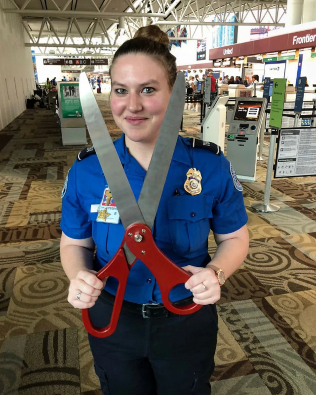 Это церемониальные ножницы, разрезать ленточки при открытии важных объектов. Надо сдавать в багаж.