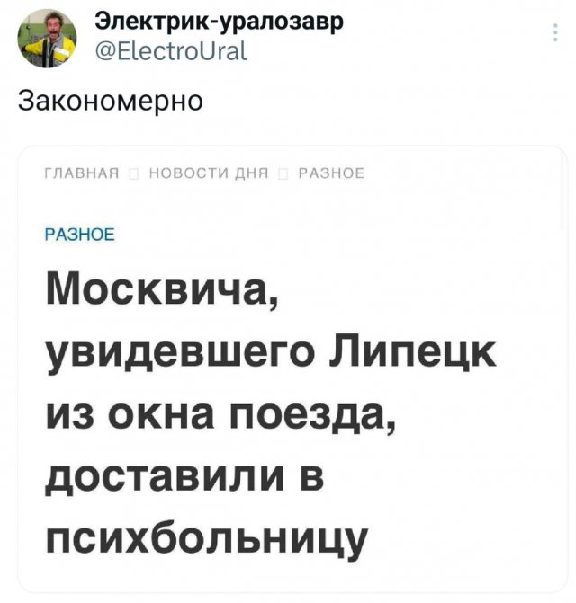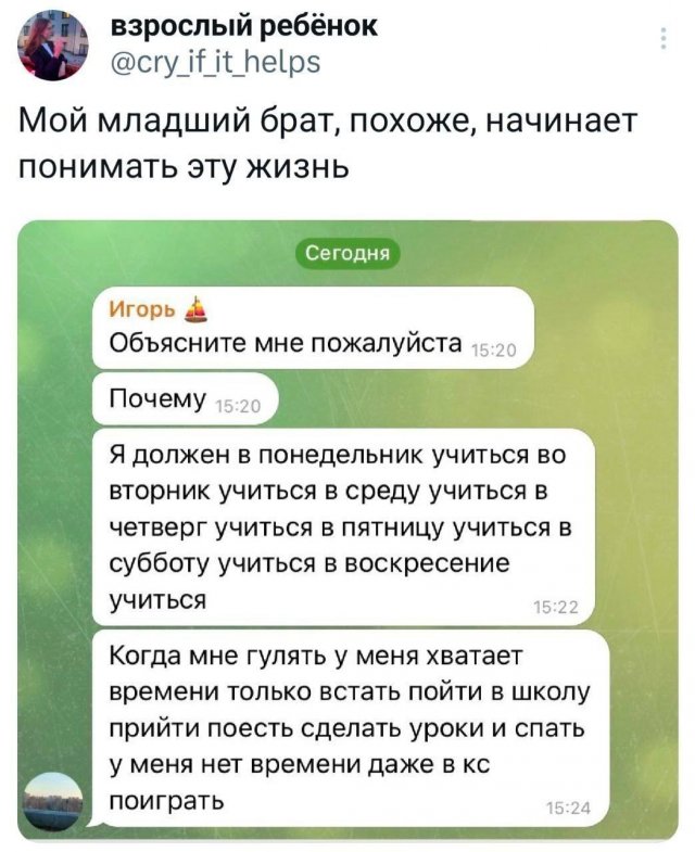 📱 Свежая подборка твитов — от души и про жизнь 11/04/2025 09:00 Новенькие твиты, которые точно заставят улыбнуться. Тут и про любовь, и про зарплату, и про тупые привычки — всё, что мы обожаем. Листай, узнавай себя, смейся. Главная / Картинки +2 Admin 0 145