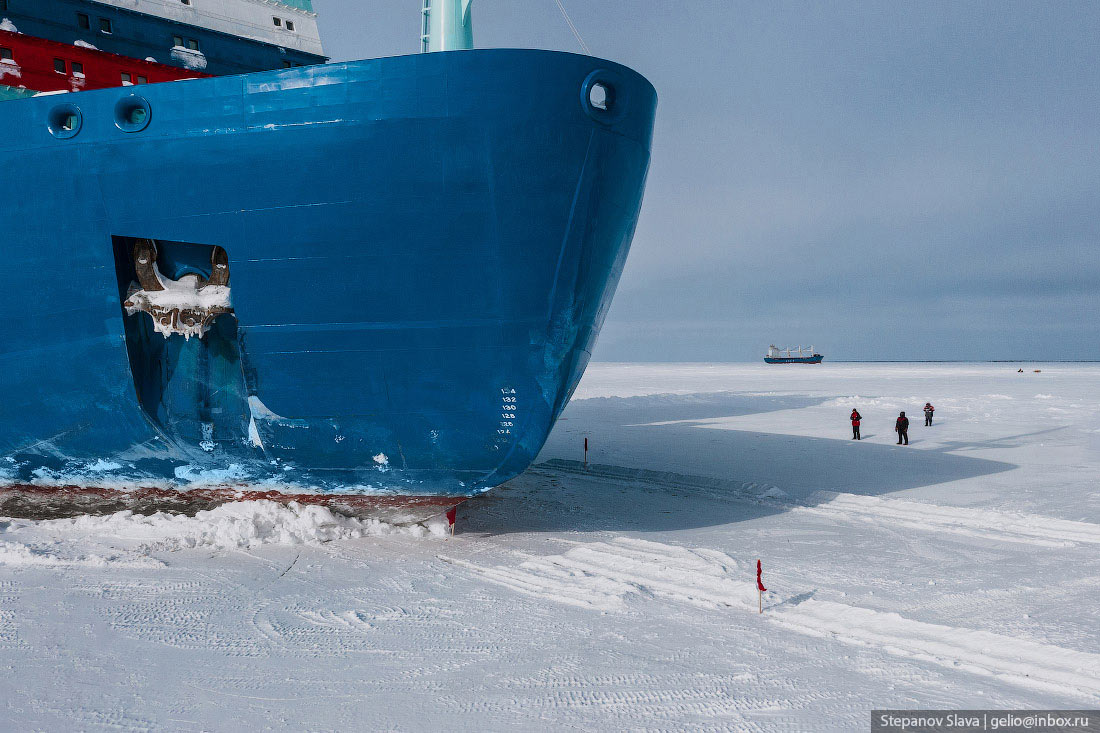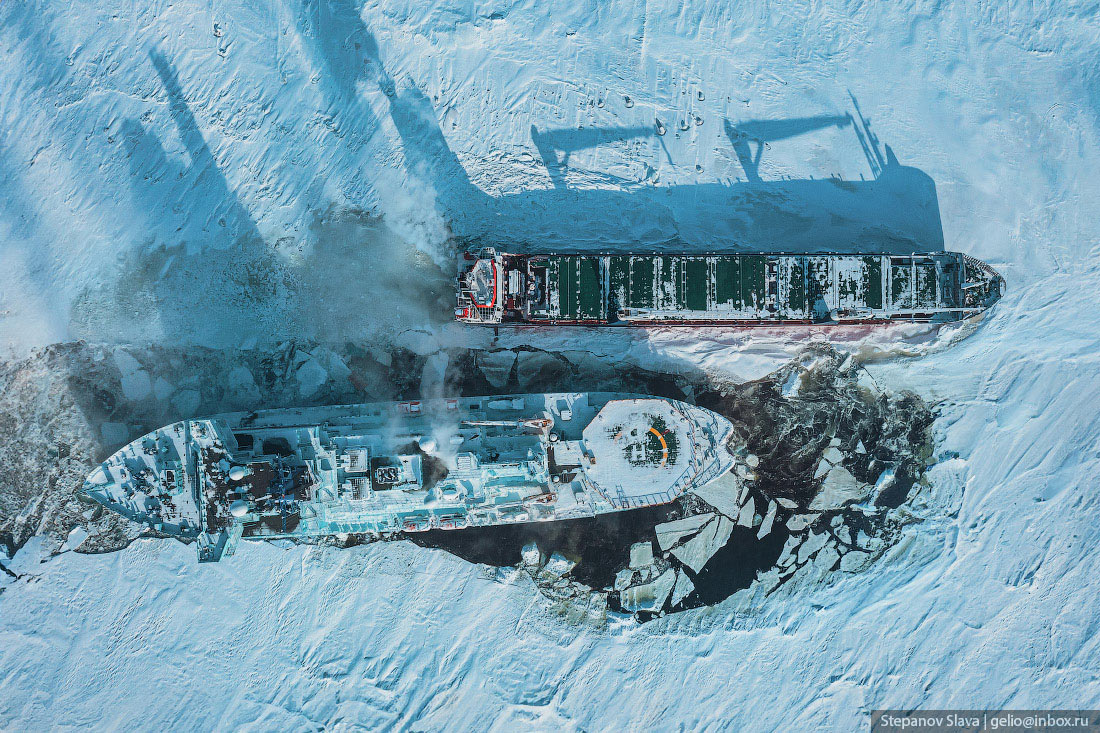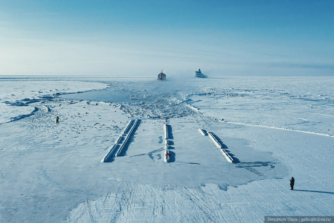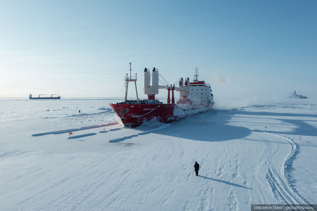 1. Ледовые причалы — по сути стоянки для судов посреди льдов, позволяющие оптимизировать многие процессы в условиях Арктики. Специалисты регулярно проверяют состояние и толщину льда, оценивают его крепость, целостность и способность выдержать многотонные грузы.