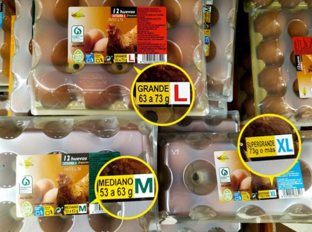 В гипермаркетах все куриные яйца расфасованы по размеру. И в упаковке обычно не 10 яиц, а 12.