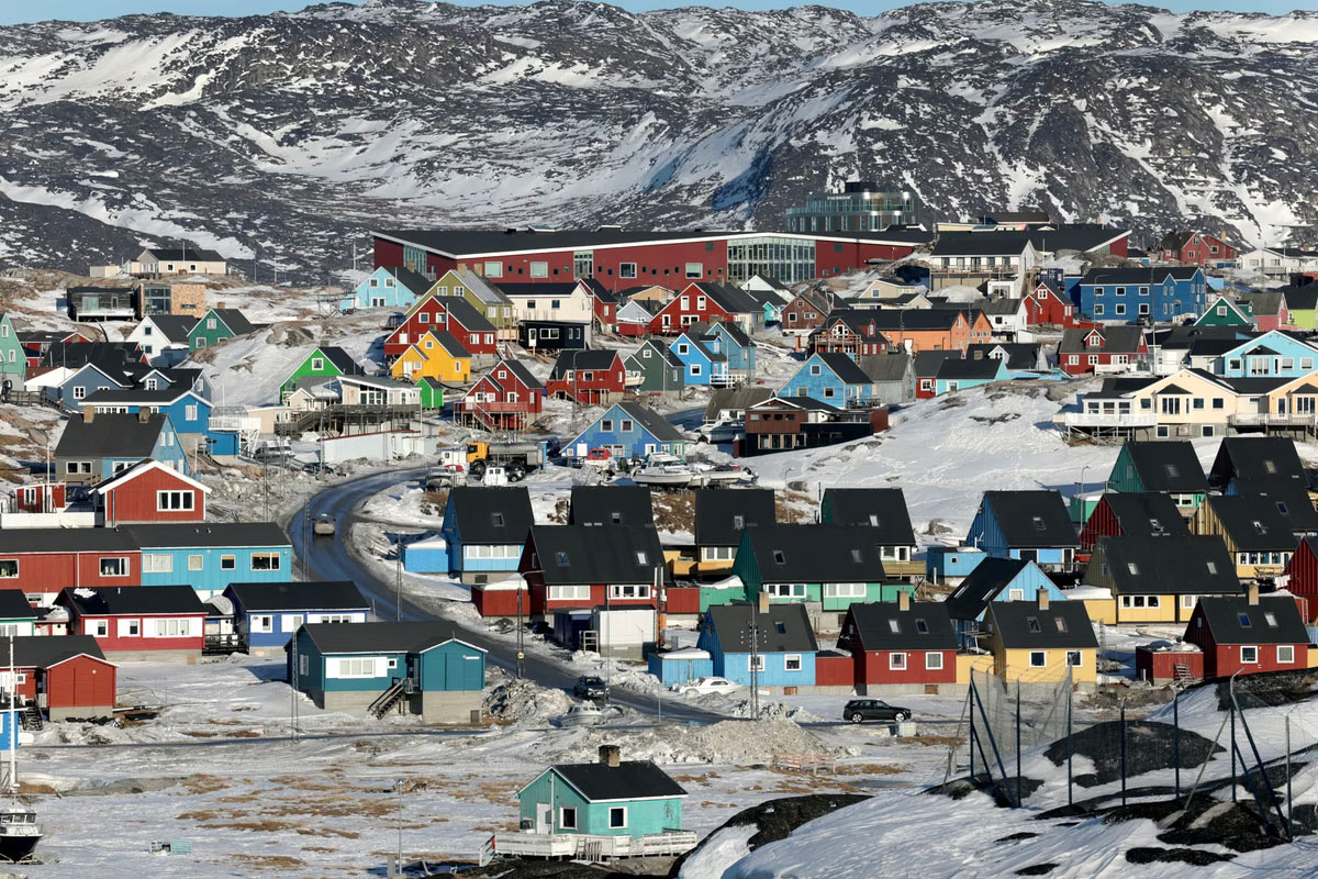 Крупнейший остров на Земле. Политически относится к Европе, поскольку вместе с окружающими меньшими островами образует одноимённую административную автономную единицу, входящую в состав Датского королевства. Крупнейший населённый пункт острова — Нуук (Готхоб), 17 984 человека (2019). (Фото Emilio Morenatti):