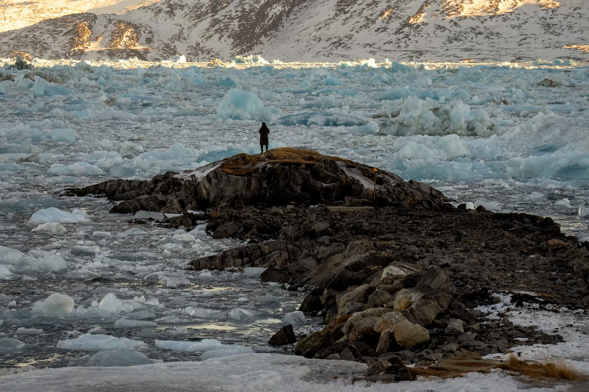 Человек наблюдает за образованием льдов недалеко от Нуука, 18 февраля 2025 года. (Фото Emilio Morenatti):