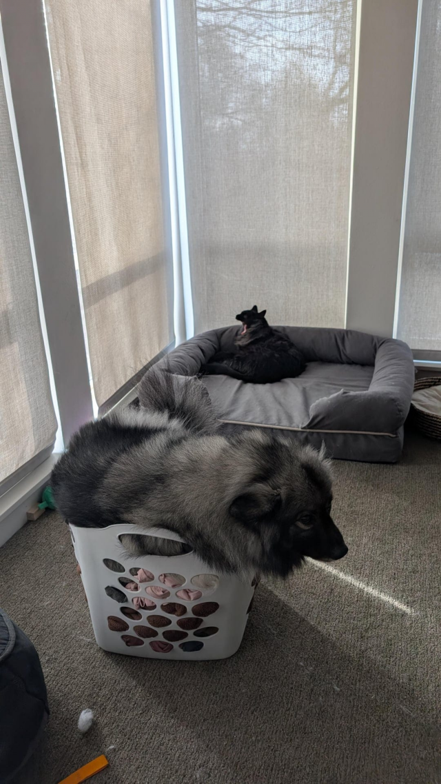 Вот что происходит, когда кот крадёт кровать моей собаки. А это наверняка происходит нередко...