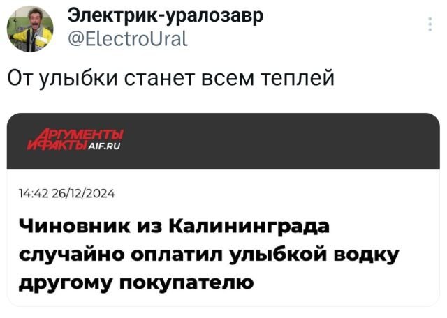 Подборка забавных твитов обо всем 24/04/2025 22:20 Вот и новая порция веселых твитов от наших любимых шутников в соцсетях! Они снова не подкачали, радуя нас ярким и позитивным контентом. Давайте не будем терять времени и посмотрим, что интересного они для нас приготовили! Главная / Картинки +2 Admin 0 161