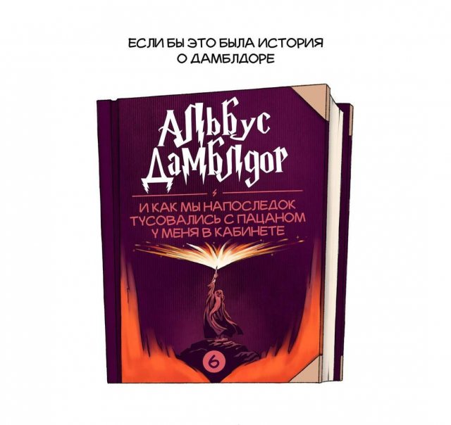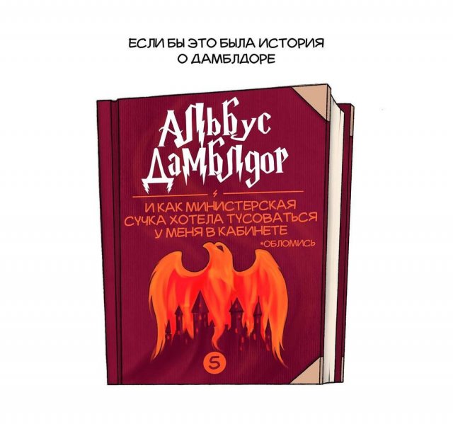 Дамблдор – яркая фигура в мире "Гарри Поттера". Но что если бы события шли с его точки зрения? Некоторые считают его противоречивым персонажем или даже злодеем. А что если бы книги назывались по-другому, если бы их писал Дамблдор? Вот такие альтернативы предлагают художники.