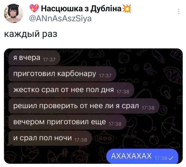🐦 Твиты, чтобы забыть о работе и просто поржать 30/04/2025 19:00 Свежая подборка ржаки из Твиттера. Всё, как вы любите: и про жизнь, и про котов, и про «я опять проспал работу». Врывайтесь и улыбайтесь. Главная / Картинки +1 Admin 0 140