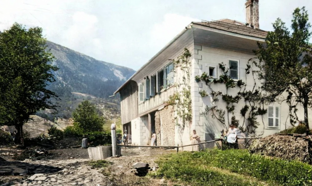 Дом с вишневым деревом Жан-Жака Руссо (1712-1778), франко-швейцарского писателя. Окрестности Тона (Верхняя Савойя), 1895 год.