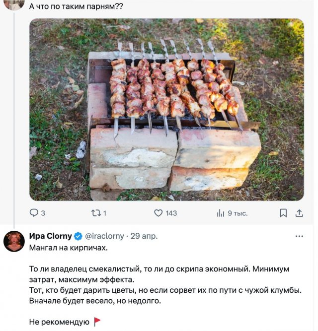 Какой у тебя мангал? 05/05/2025 23:30 В сети «X» разгорелся интересный тред! Одна девушка обсуждает, как мангал может рассказать о характере мужчины. А ты согласен с этим? Главная / Картинки 0 Admin 0 286