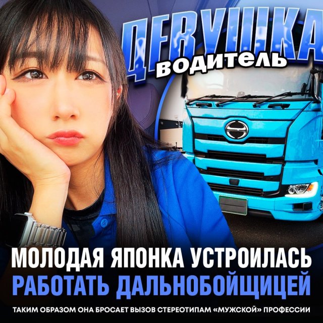 Молодая японка уже 6 лет работает дальнобойщиком, причем эта профессия для нее – не просто работа, а настоящее удовольствие! Домой она заезжает только раз в неделю, а в остальное время колесит по дорогам. При этом она всего 1,46 м ростом, но умудряется дотягиваться до педалей. Удивительно, правда?