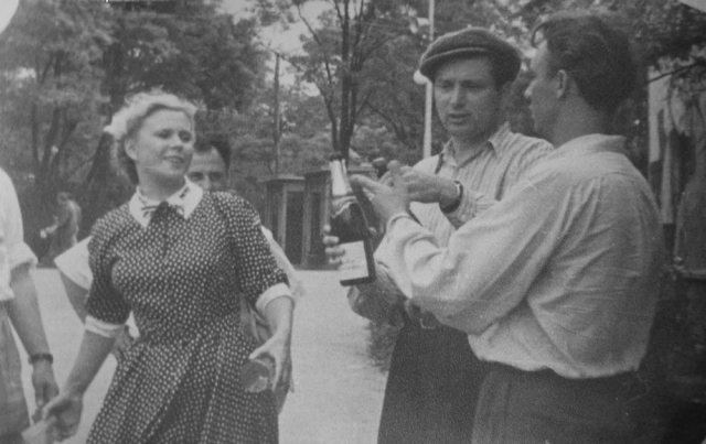 Геннадий Нилов, Евгений Жариков и Андрей Миронов на съемках комедии «Три плюс два», 1963 год.
