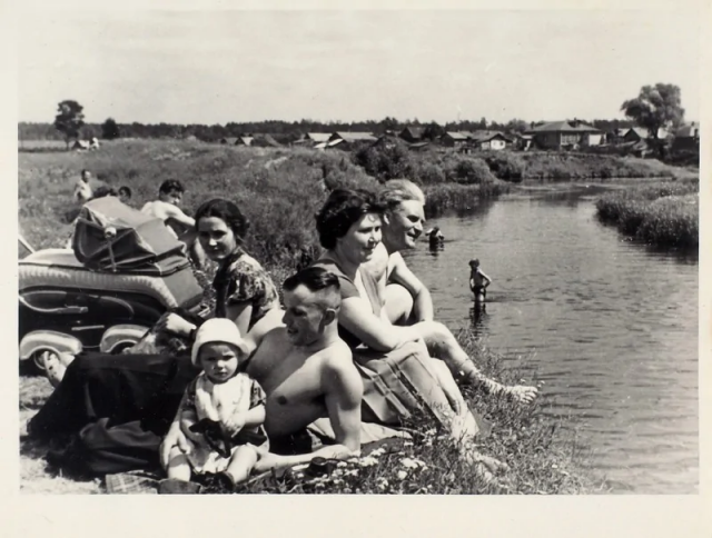 Юрий Гагарин с семьей на реке Клязьма в Пушкино Московской области, июнь 1960
