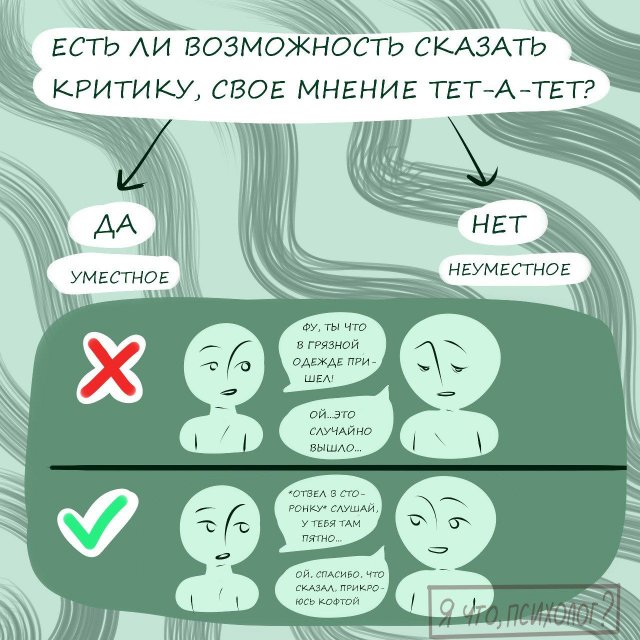 🗣 Как правильно критиковать 24/09/2025 21:00 Все мы любим покритиковать — иногда даже больше, чем нужно. Но важно делать это так, чтобы не задеть и не унизить человека. Иначе критика превращается в банальный хейт. Главная / Картинки 0 Admin 0 34