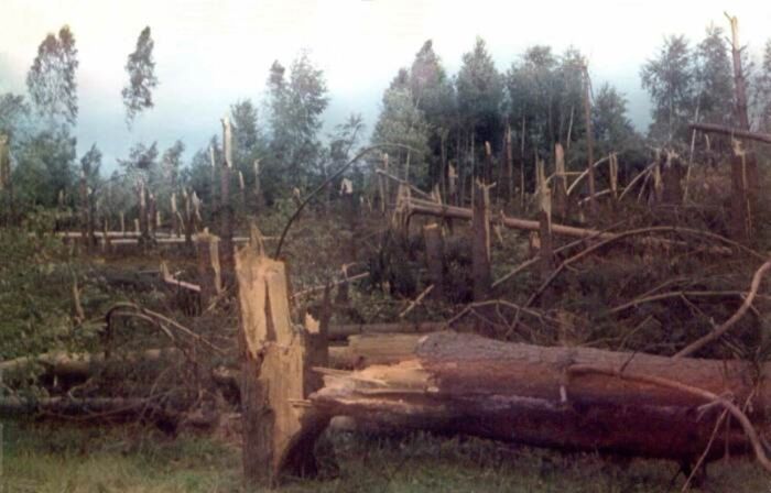 Откуда взялся торнадо В первые дни лета 1984-го в центральной части СССР после долгого периода высокого атмосферного давления установилась знойная и сухая погода. В результате 9 июня встретились два атмосферных фронта: один двигался с юго-запада, второй — с севера. Столкновение воздушных масс спровоцировало образование нескольких смерчевых воронок высокой разрушительной силы. Разные источники предполагали, что их могло быть от 8 до 13. Первую заметили из Москвы: вихрь прошелся по Шереметьево, снес ангар и повредил несколько самолетов.