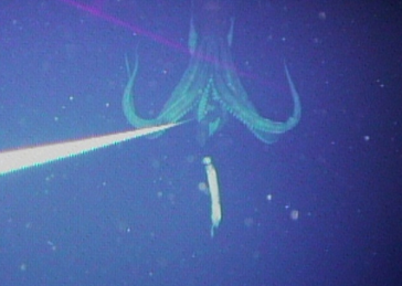 Абиссальная зона начинается с глубины 4000 м и доходит до 6000 м. Asperoteuthis (самый узкий кальмар) и колоссальные кальмары.