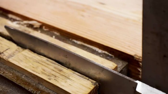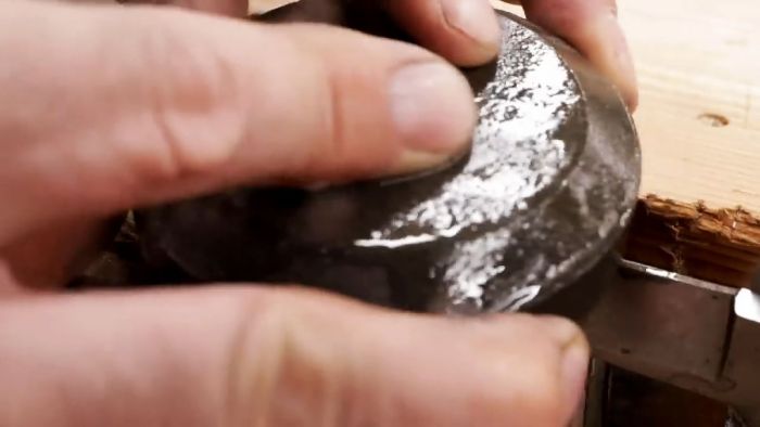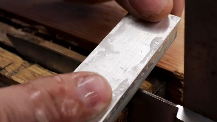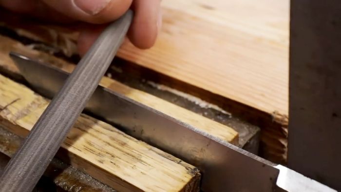 Необходимо надежно укрепить лезвие режущей кромкой вверх в столярных тисках.