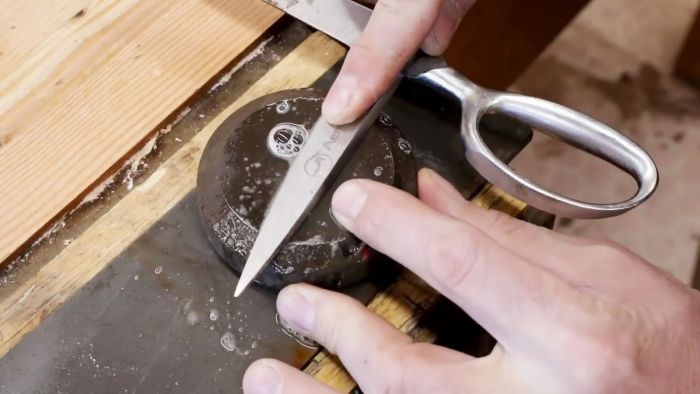 Наиболее ответственный момент – заточка режущих кромок лезвий ножниц. Здесь профессионализм заключается в соблюдении изначального угла заточки, который должен оставаться постоянным от начала до конца режущей кромки, то есть без «твердости» руки здесь не обойтись.