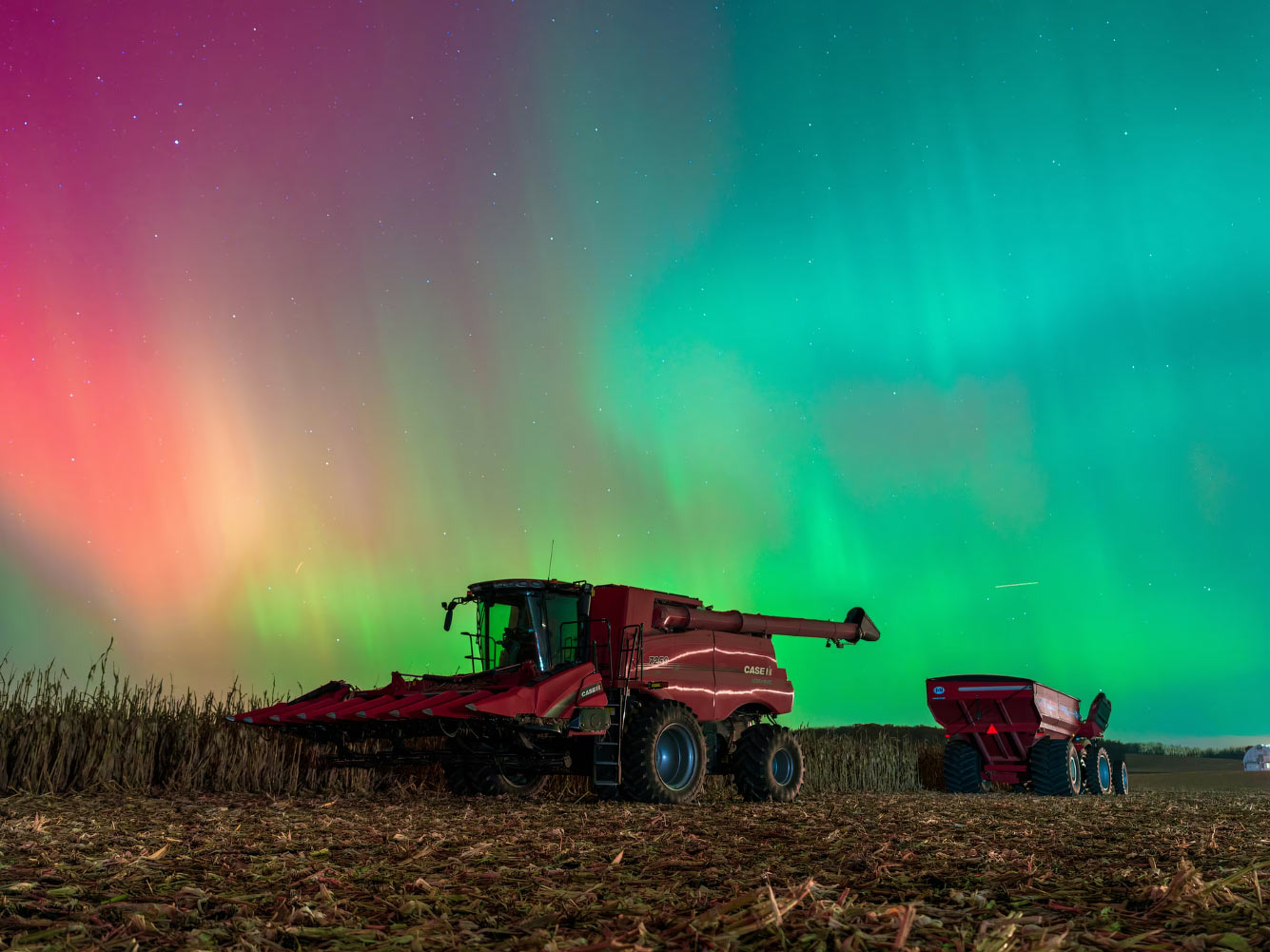 Северное сияние освещает небо над Монро, штат Висконсин. (Фото Ross Harried / NurPhoto):