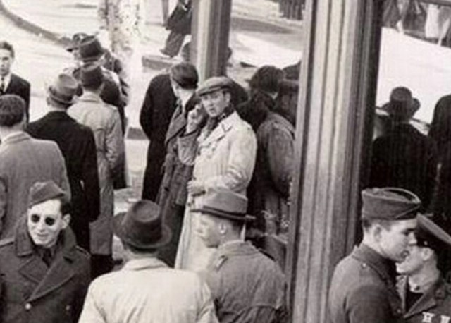 Исследователь Кристиан Хоффманн, первым опубликовавший фото, отмечает: поведение мужчины слишком современное для 40-х годов — так мы стоим сегодня, болтая по смартфону.